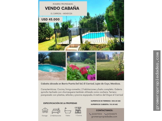 VENDO CASA CON DOS HABITACIONES- 1 BAÑO -PILETA- GALERIA QUINCHO CON CHURRASQUERA -PATIO PARQUIZADO EN B° PUERTA DEL SOL EL CARRIZAL LUJAN DE CUYO